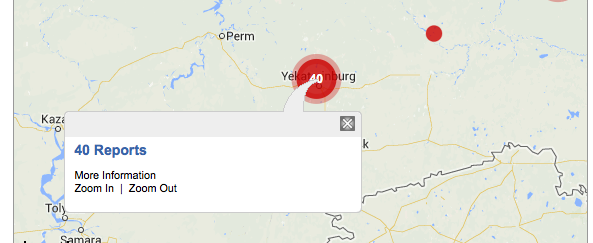 The red circles on the map represent violence in particular regions. The closer you zoom in the more accurate the placement of the circles to where the violence has taken place.