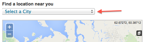 - In the 'find a location near you' section, please use the ‘select a city’ radio button and select your city.